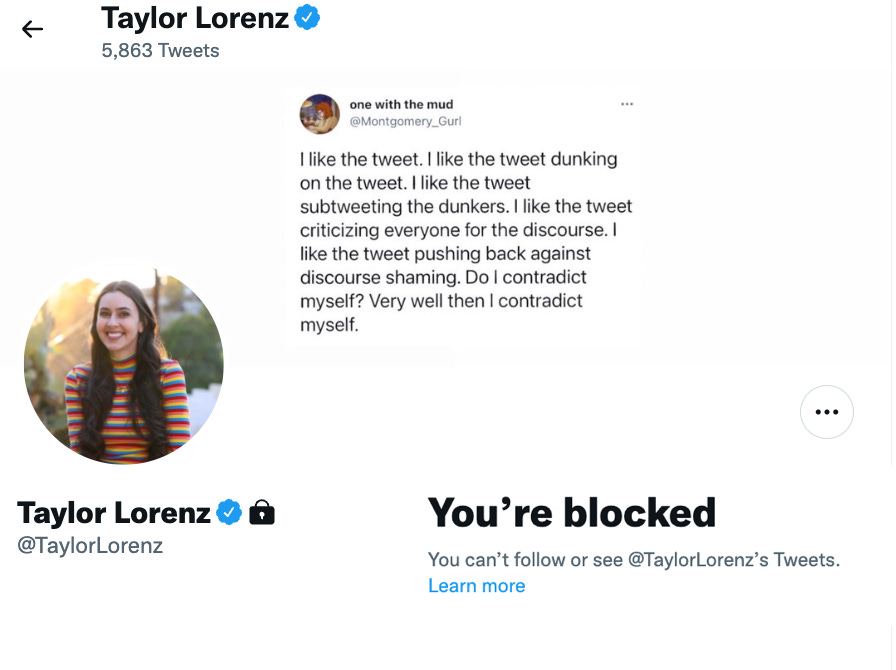 Lorenz has been central to the anti-tech effort, taking on major figures from tech, in some cases through false allegations, such as claiming Marc Andreessen of Andreessen Horowitz used the epithet “ret*rd” in a Clubhouse discussion. More recently, Lorenz was accused of doxxing the conservative Twitter user Libs of TikTok as part of an in-depth investigative piece that revealed the user’s identity and linked to a document that showed her home address.